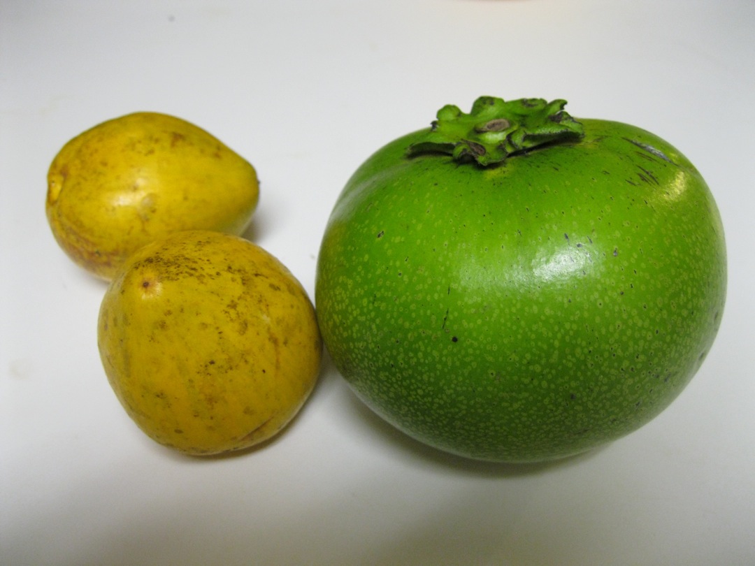 At my farmer’s market this weekend I got some strange fruits. The little yellow ones are called egg fruit (hopefully a reference to their size and shape) and the big green one is called black sapote or chocolate fruit. I’ve never tried either before. I’ll let you know how this little adventure goes. Let me know what new thing you try because you decided to enact “Meatless Monday” or just to have a vegetarian or vegan meal just for the fun of it.