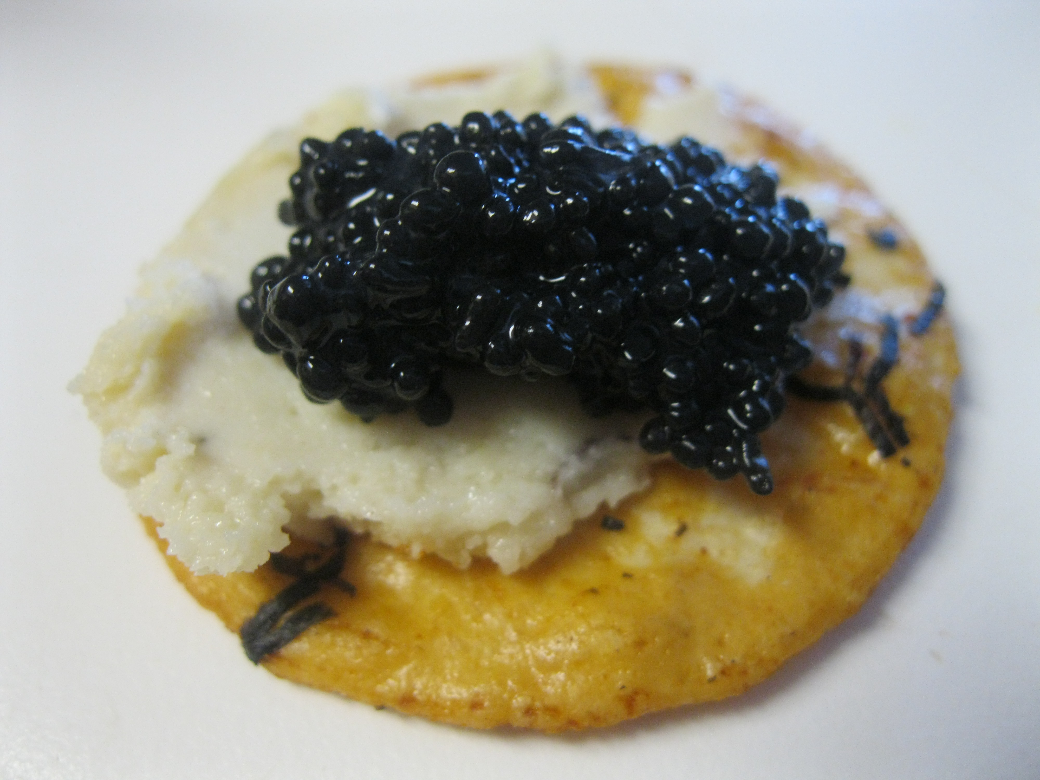 We started with the traditional black Cavi-art and the red chili varieties. We paired it with some regular rice crackers and some home-made cashew cheese. Both varieties of Cavi-art are pretty amazing both in appearance and texture relative to the real thing except that neither is driving a species to extinction. Sturgeon are really cool fishes. I want future generations to get to meet them. It’s still a little pricey for most budgets but compared to the real thing is relatively inexpensive at $10.95 for 3.5 ounces