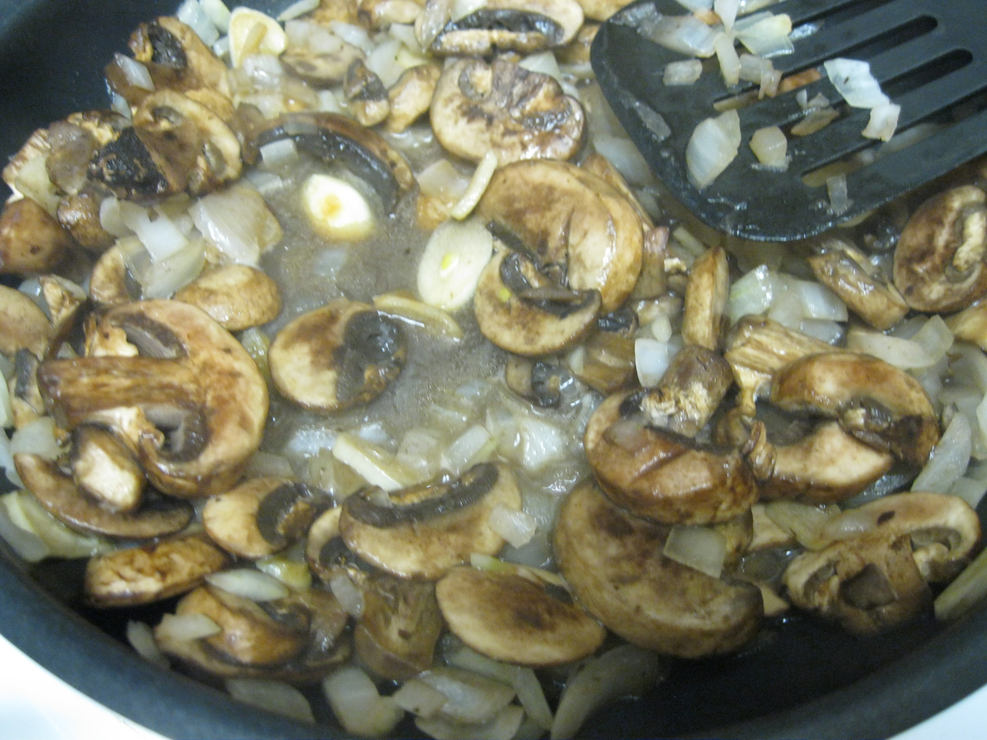 After the onion was soft I added the mushrooms. Once they started to soften, I added the spinach and turned off the heat once it was wilted.