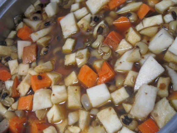 Then we added the rest of the veggies and sugar and stirred until the vegetables were hot and tender.