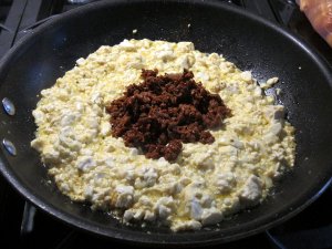 This was a great savory dish that would go just as well with rice or even by itself. I definitely enjoyed it more than the chorizo alone! –Melissa