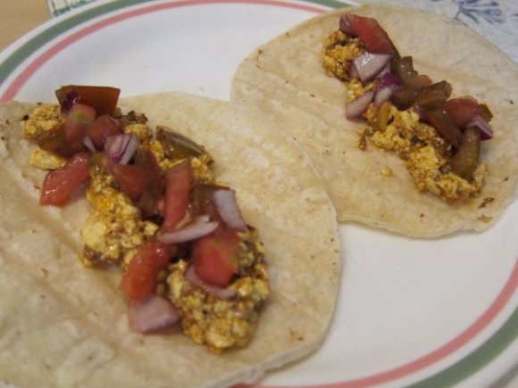 My latest experiment with Tofurky chorizo was potato & chorizo tacos. Now, this came out of wanting some vegan corned beef hash, but since the chorizo is already spiced as chorizo and I had tortillas, I went with the tacos instead.