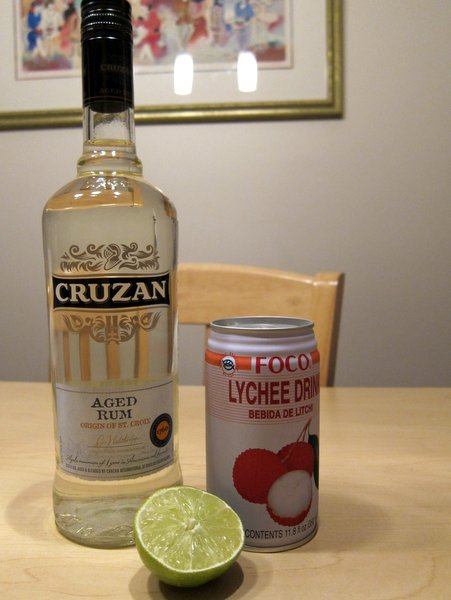 Pour the lychee drink into a glass, add the rum, squeeze in a lime wedge, stir… and then drink! This cocktail is completely deceiving. I can only taste the lychee juice but I sure am feeling buzzed. The only thing missing was some fresh lychee fruit to toss into the glass.