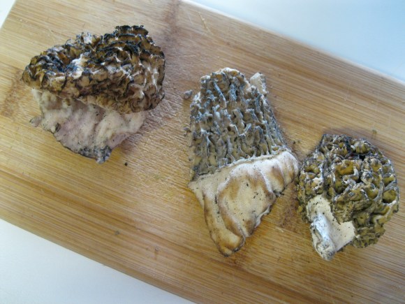 Whether you forage yourself or not, clean your morels carefully. Because they’re hollow inside and intricate on the outside, it’s not uncommon for them to be gritty before washing and to harbor… surprises… inside. Slugs, spiders and other critters might be taking a nap, so be careful to cut each one open before cooking.