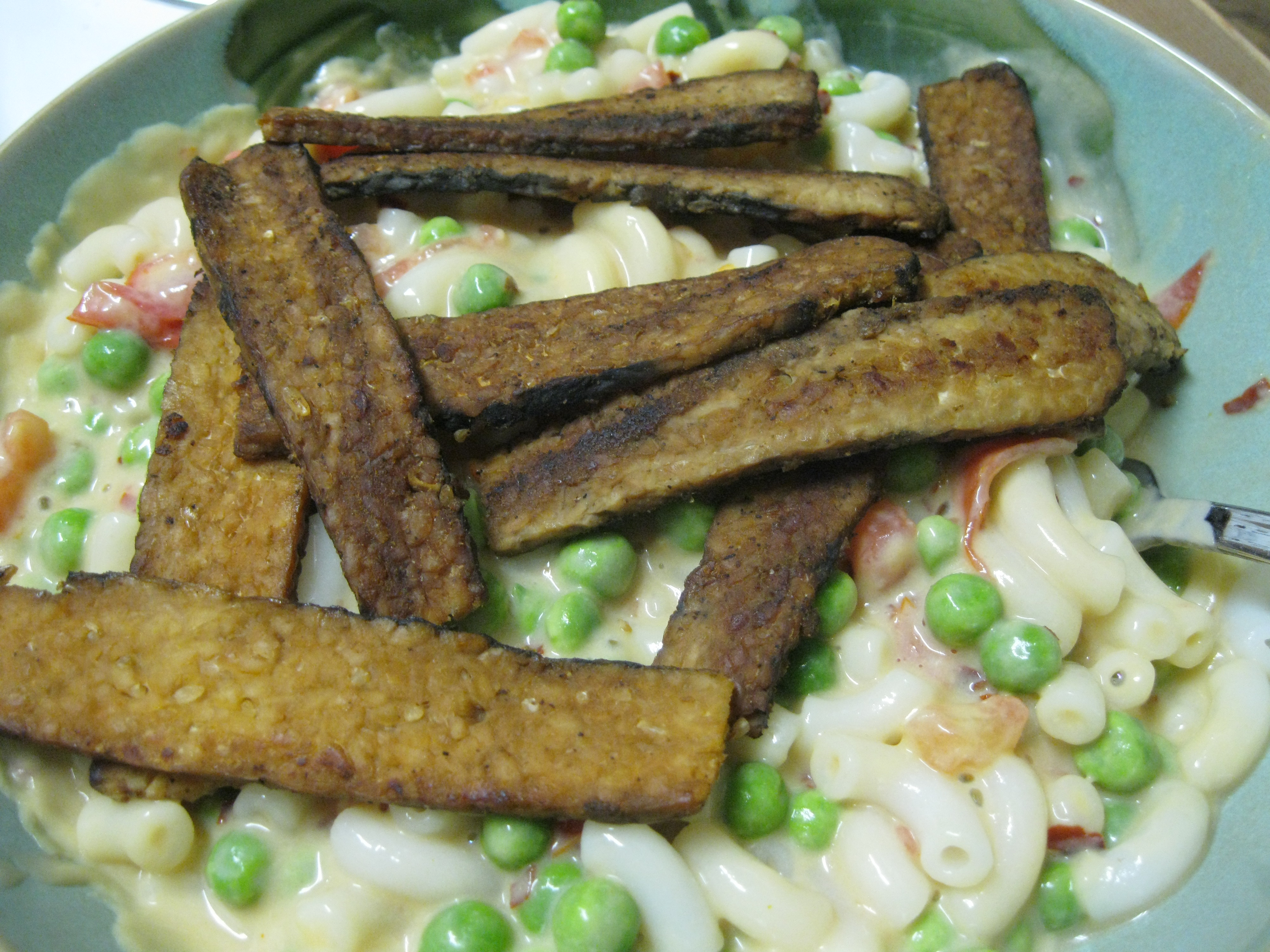 I did find it to be a remarkably pleasant adddition: the smoke of the bacon with the salty cheesy sauce and sweet peas was exactly the kind of comfort food we needed that particular evening. Enjoy!
