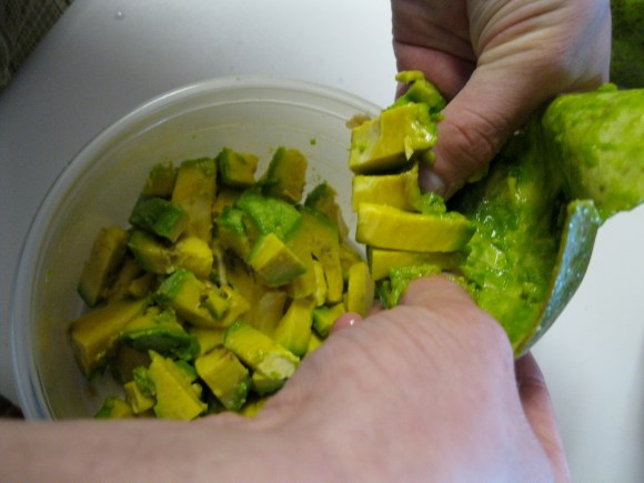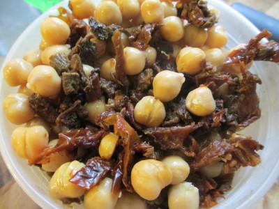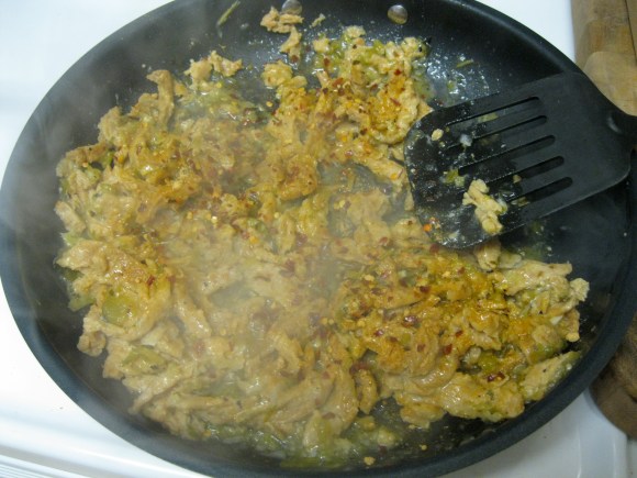 I actually used a fork to mush the chickpeas. I liked the texture it provided since it reminded me more of real tuna that way. Once it was all mixed together, I microwaved it until it was hot and then adjusted the seasoning.