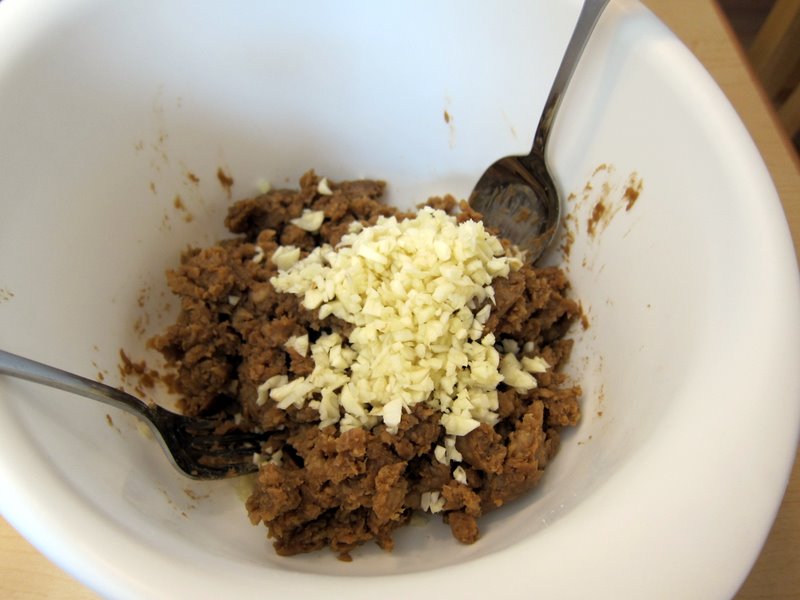 First, I minced the garlic and then tossed it in with the ‘meat.’ I set it aside and then mixed together the dry ingredients in a small bowl. I added it to the ‘meat’ mixture along with the vinegar. Then I mooshed it all together.
