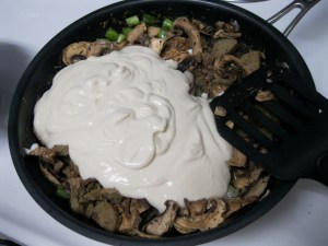 Then we added the broccoli, green beans, and mushrooms and allowed them to steam lightly for 3-4 minutes while mixing them into the sauce. If you’re interested in adding some protein, a 2.5 cups of chickpeas or some pressed cubed tofu would make an excellent addition. I added the scallions, bamboo shoots and bell pepper about 5 minutes later. I squeezed the lime over it and mixed in the Thai basil. and stirred it until I could smell the basil.