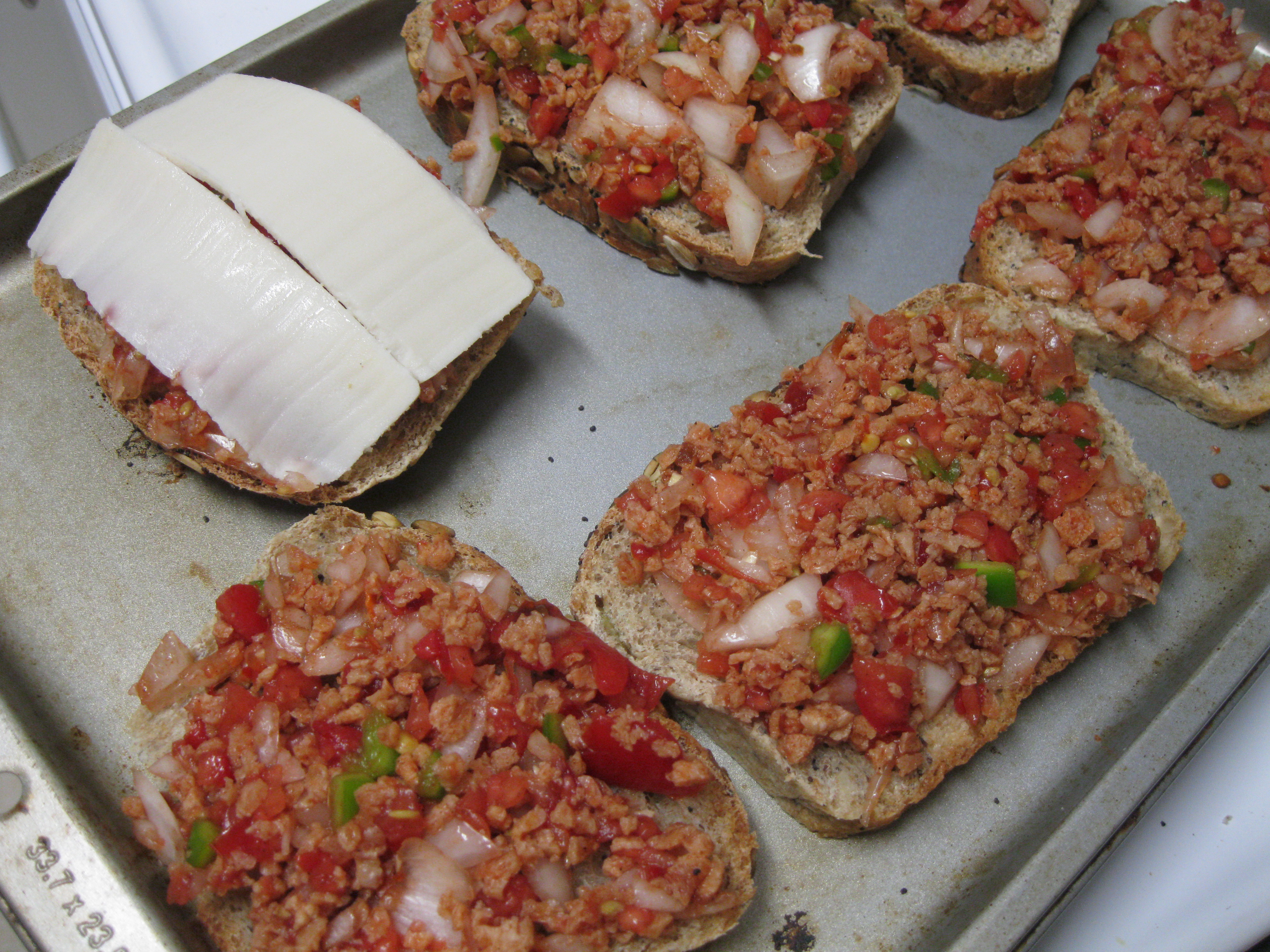 I mixed these all together, adding the TVP until most of the moisture from the tomato was absorbed. I didn’t want soggy bread, don’t judge me.