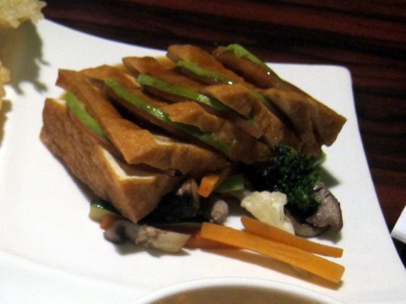 First, I grabbed a block of tofu and pressed it overnight using my TofuXpress. Then, I scored the tofu and let it sit in some miso paste and chopped green onion for several hours.