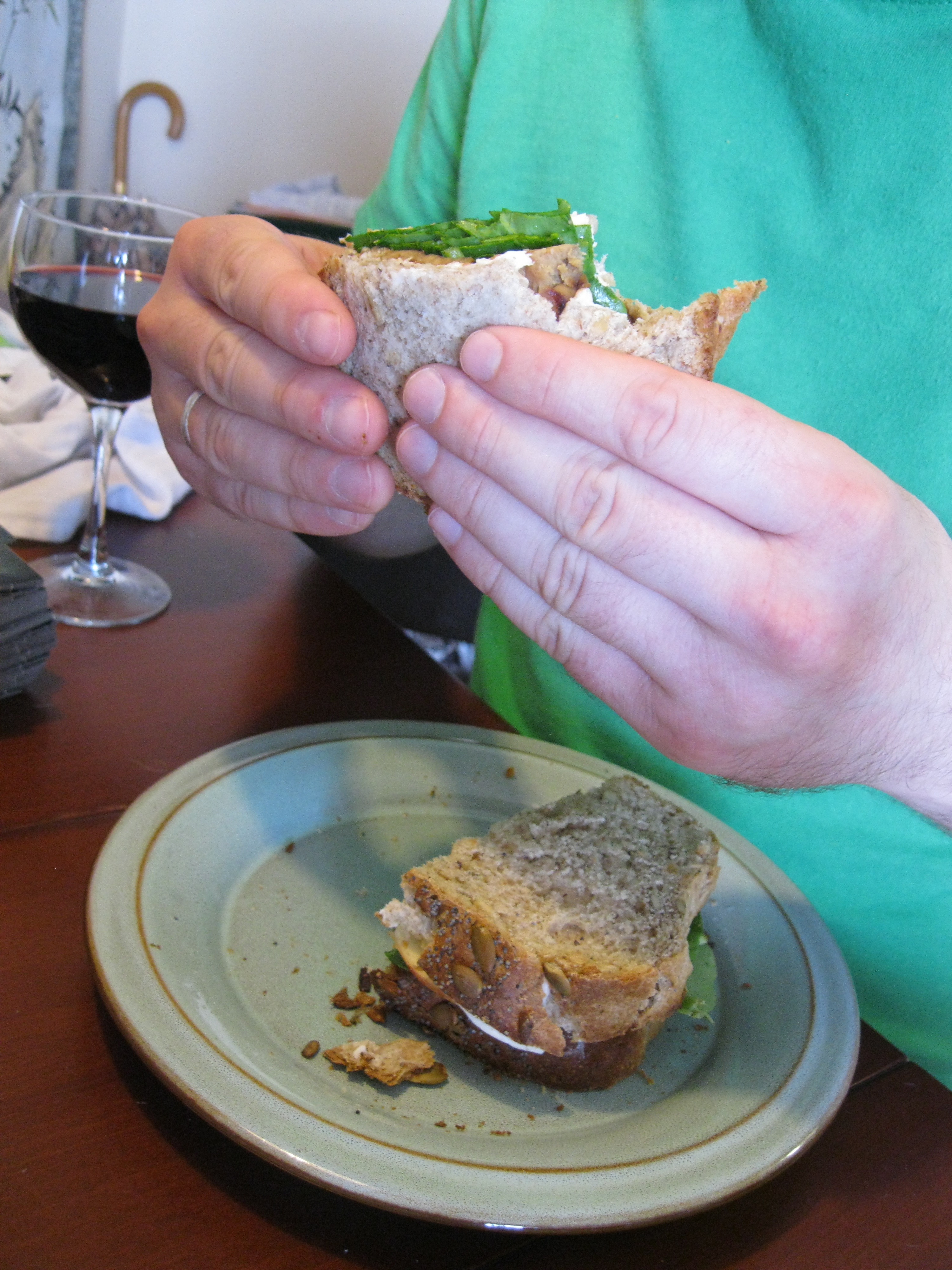 Don’t tell Brent he’s got competition from non-dairy cheese or the sammies will end up… oh… yeah, he’ll eat it all. Yay!