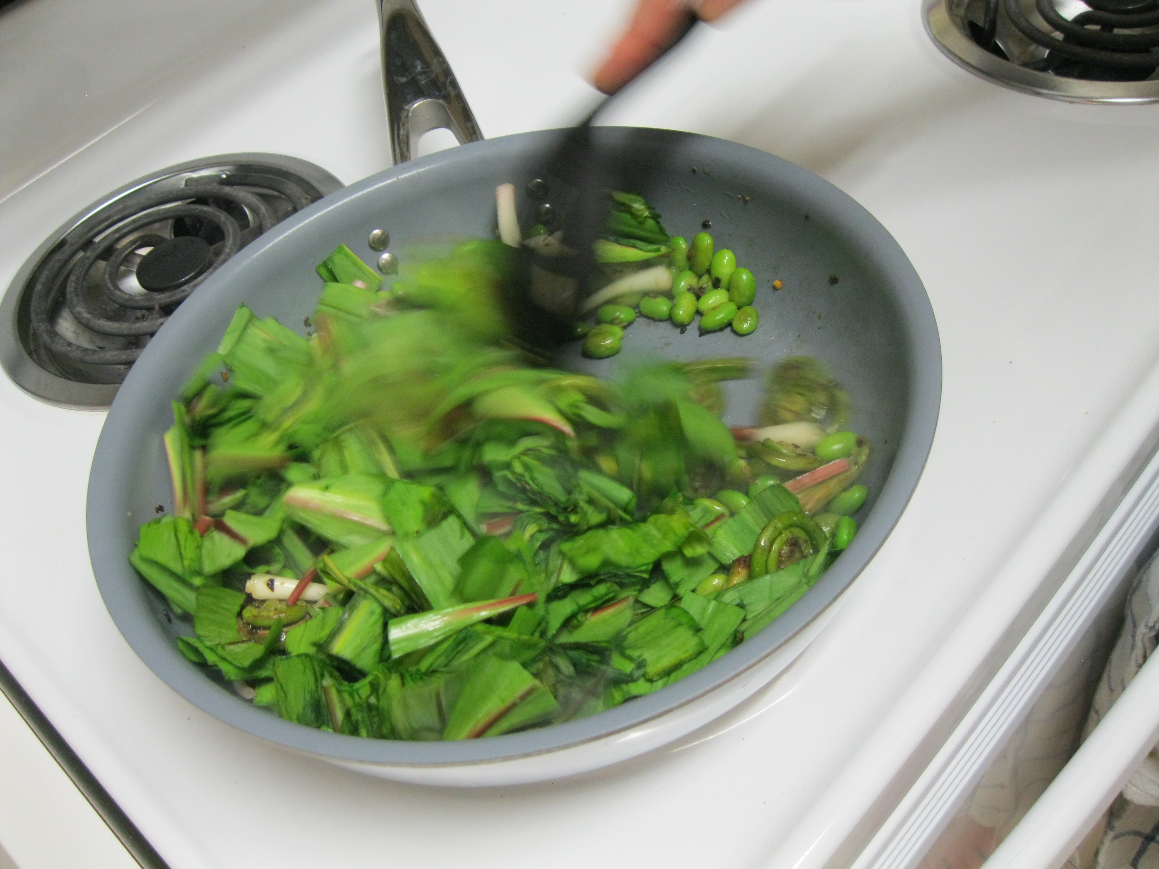 3. Lower the heat or remove from heat altogether and toss in the spinach – it all depends on whether you want the spinach fully cooked or just wilted.