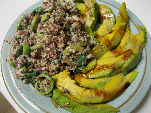 I’m trying to get back to healthy eating – meaning that I’m trying to ensure that I’m getting all the nutrients I need. This easy quinoa dish is a step in the right direction. It makes a great side dish with tofu or other protein of your choice and is totally versatile. Add some walnuts or sweet peppers or squash! Yum.