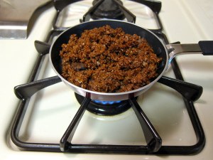 I heated up the ‘chorizo’ in a mini frying pan for 5 minutes.