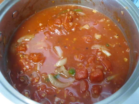 Mix well and add the tomato, tamarind and paste. Stir over heat until the oil starts to separate from the mixture and form a sheen of bubbles on he surface. If you’ve got a hand blender, now is the time to use it. Blend until the larger chunks have been broken down. This step isn’t necessary but I like my channa sauce smooth. Then add the spices and stir them into the sauce, adjusting as necessary. If you don’t feel like adding all those spices individually, you can use your favorite curry powder and salt to taste but I can’t guarantee you it’ll taste like you might expect.