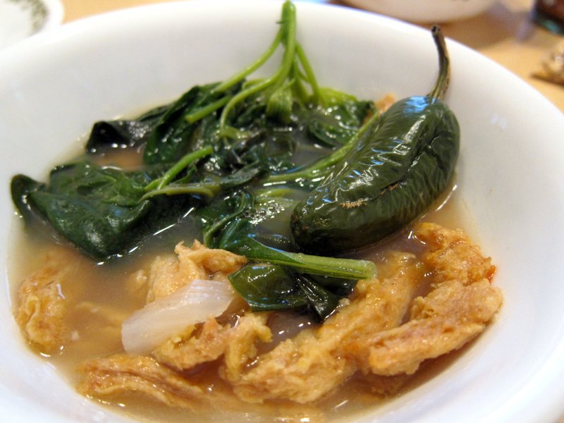 This looks pretty tasty (and it was) but I gotta say that our sinigang is usually a lot more exciting. We usually put lots of eggplants, long beans, and taro root in it. The veggies today consisted of only some “wild spinach” from the backyard. The broth has a sourness to it that is oh so good.