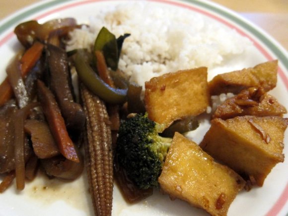 This was our first in a line of experiments involving some of our favorite ingredients: PB2, Sriracha and tofu. We wanted pizza but didn’t have any of he traditional ingredients so we decided to wing it and make something Thai-inspired. We used a pre-made gluten-free pizza crust from the ZenCat bakery but you can use a storebought variety or make our home-made crust.