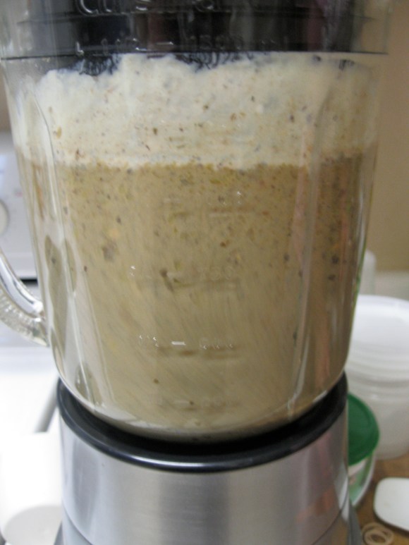 1 carton of silken tofu or a cup of dry cashews soaked overnight, blended to a smooth creamy texture adding water as necessary