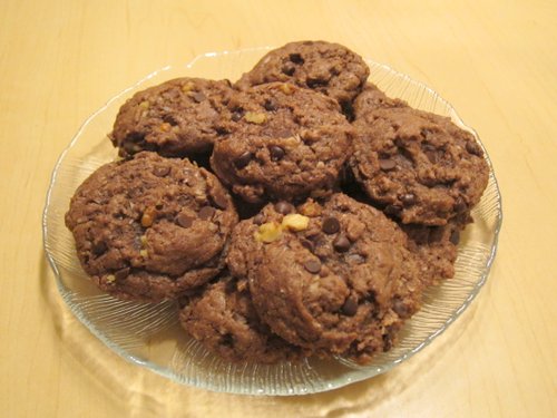 Vegans! You gotta get this book and check out BakeandDestroy.com. For the cookie swap (and also for the Chicago Food Swap, which I will recap in a few days), I followed Natalie Slater’s recipe for German’s Chocolate Cookies. I made a couple tiny changes to the recipe for two reasons: 1) I wanted them to be soy-free so that my sister could try some and 2) I was missing some ingredients.